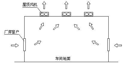 此种方式如果设计风量足够的话,会有非常好的通风效果,但此举没有任何降温功能,车间内温度基本决定于室外温度。
